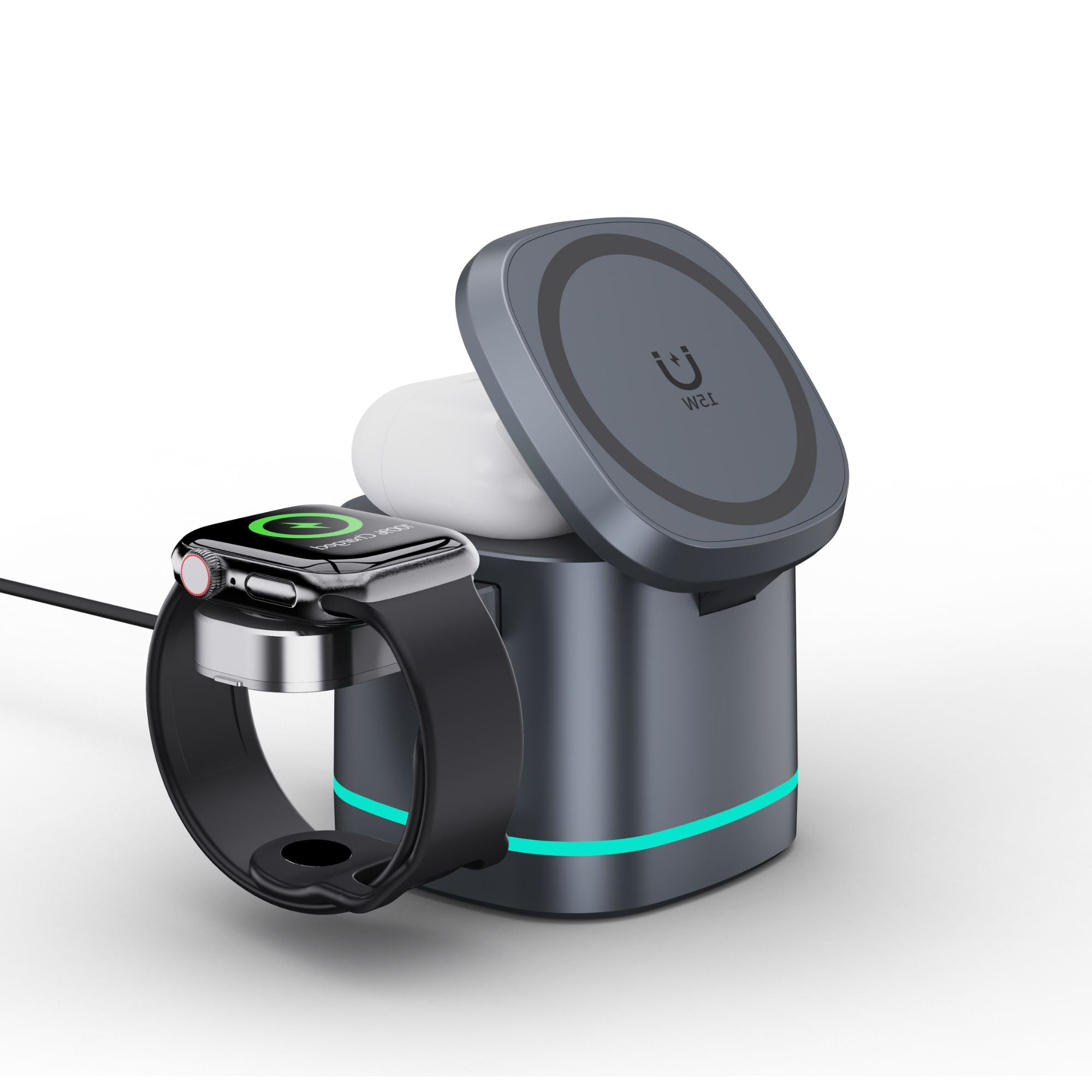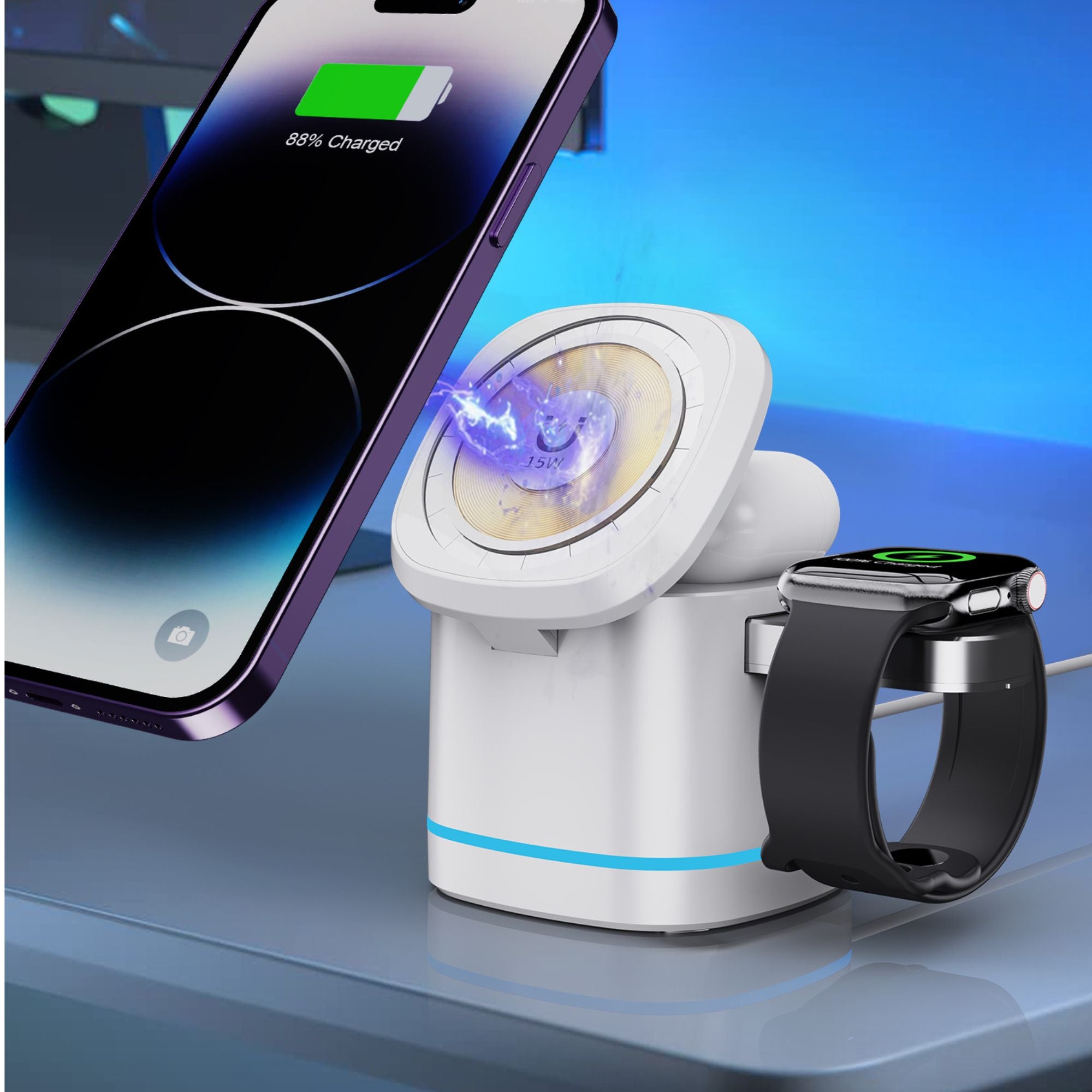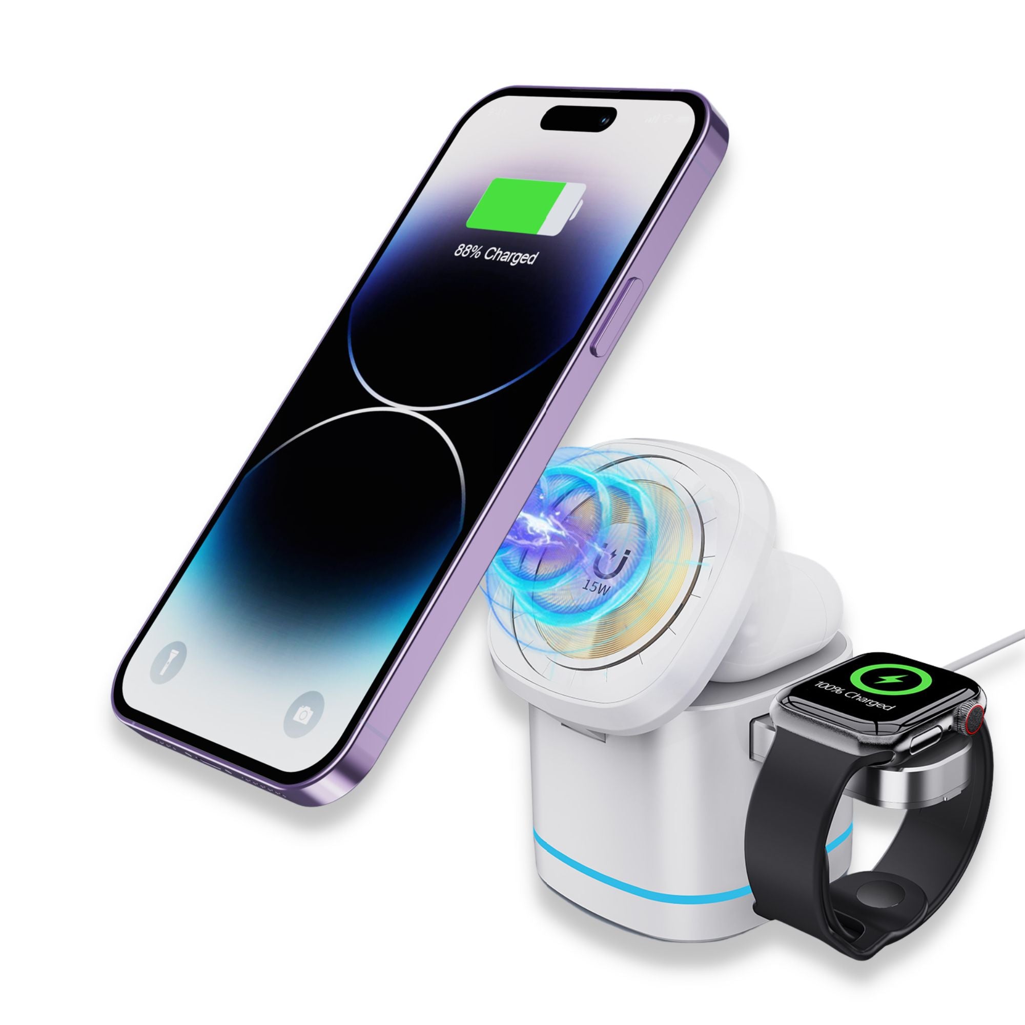 A Very Versatile 3-in-1 Charging Station for Apple Devices. Effortlessly charge your iPhone, Apple Watch, and AirPods with this all-in-one wireless charging solution.
