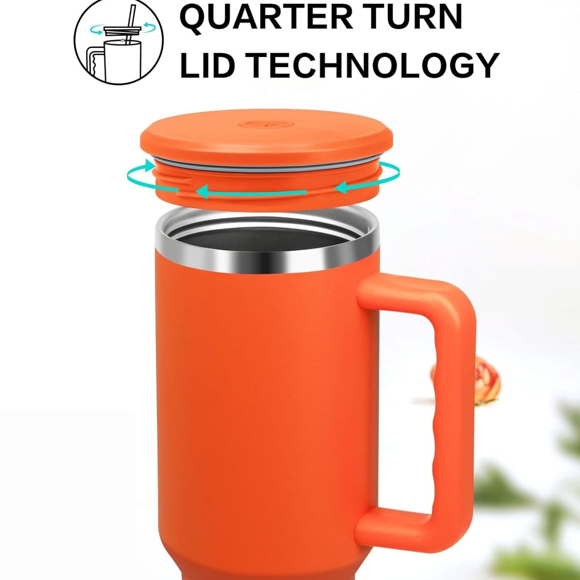 40 oz Stainless Steel Tumbler, the ultimate travel companion for all your hot and cold beverages. With its innovative quarter-turn lid technology, this tumbler guarantees 100% leak-proof performance, allowing you to enjoy your favorite drinks anytime, anywhere, without the fear of spills or messes.