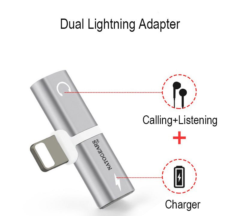 Charging Adapter For Apple iPhones-Lightning to Dual Head Jack Audio