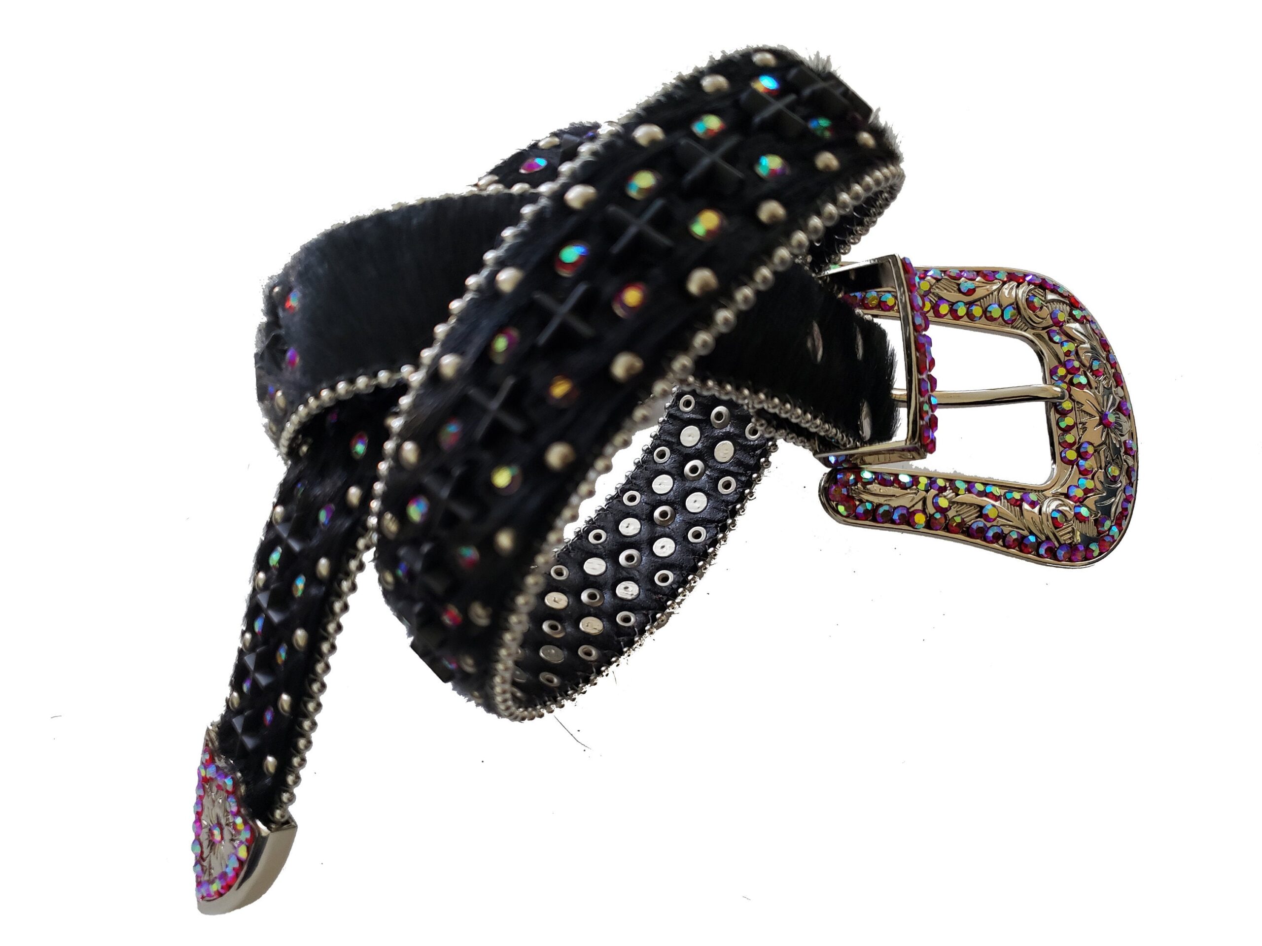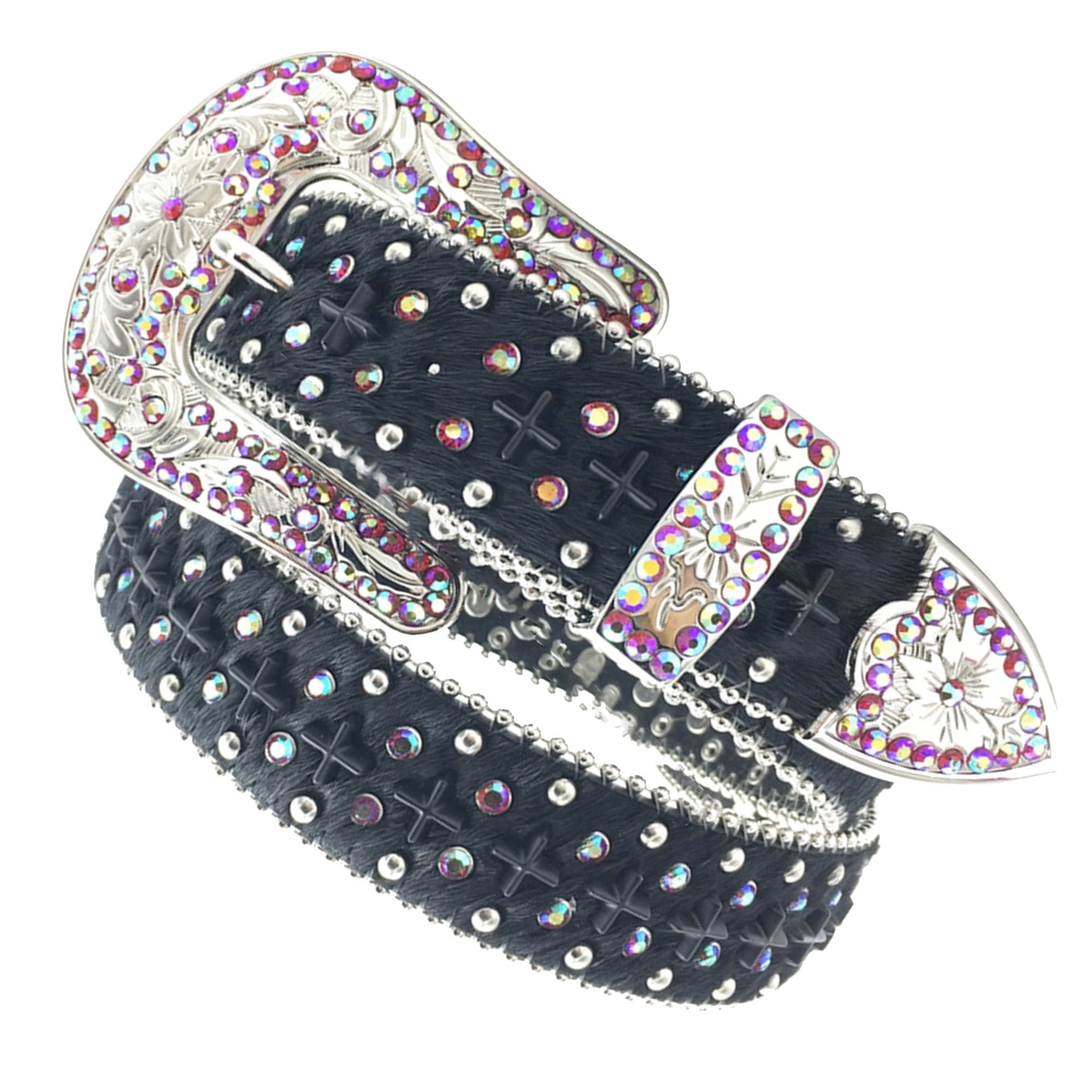 Rhinestone Filled Belt Buckle, Tip, and Belt Holder