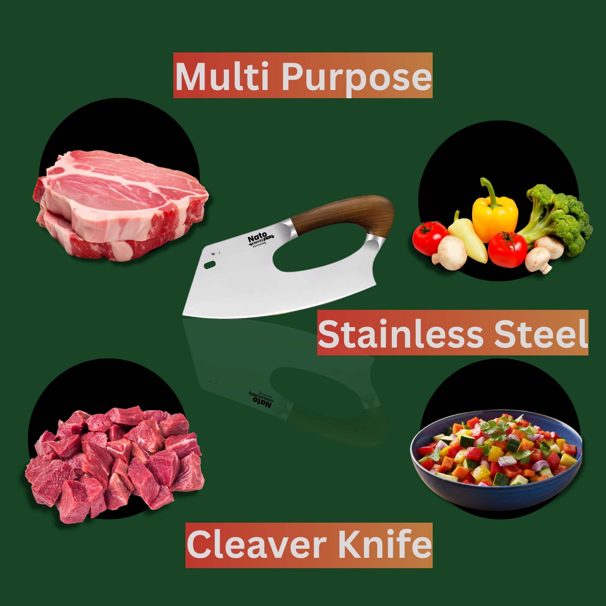 As part of the renowned NatoGears product line, this cleaver embodies our commitment to innovative design and uncompromising quality. Each knife is crafted with the same attention to detail that has made NatoGears a trusted name among culinary professionals worldwide.