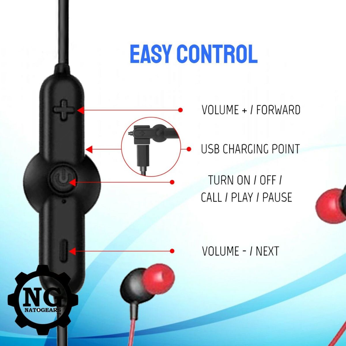 NatoGears 48 Hours Playtime Sport Neckband Bluetooth Earbuds