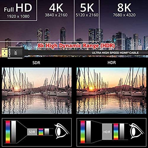 UP TO 10k@12Hz SUPPORT: This 2 meter HDMI cable delivers UHD video and audio quality to enhance your movie experience. This 8K HDMI 2.1 cable can support up to 8K@120Hz/60Hz, 10K@144Hz/120Hz/60Hz and a wide variety of other resolution including 10k at a high refresh rate