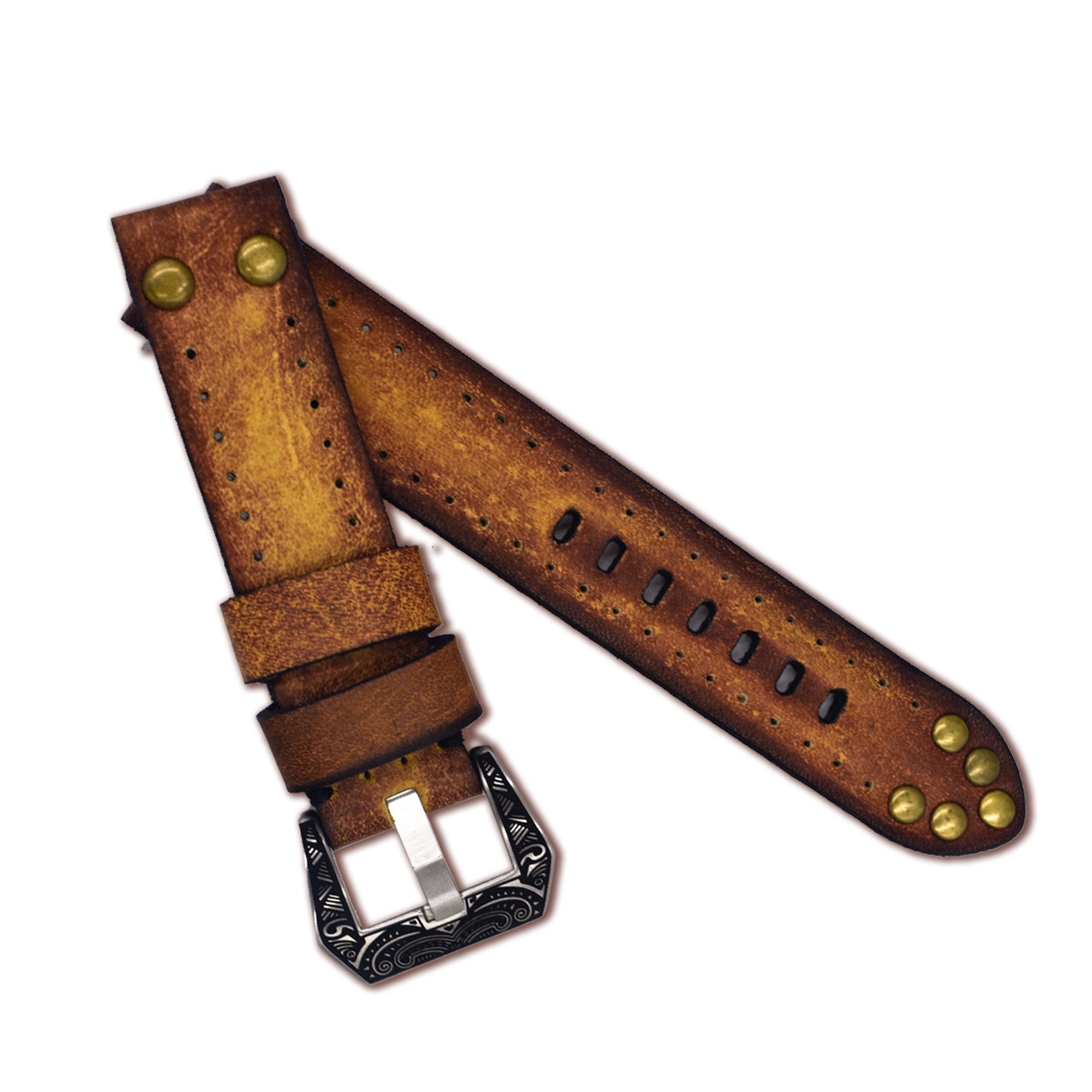 Rugged Vintage Look-Handmade Leather Watch Band/Strap 24mm Width