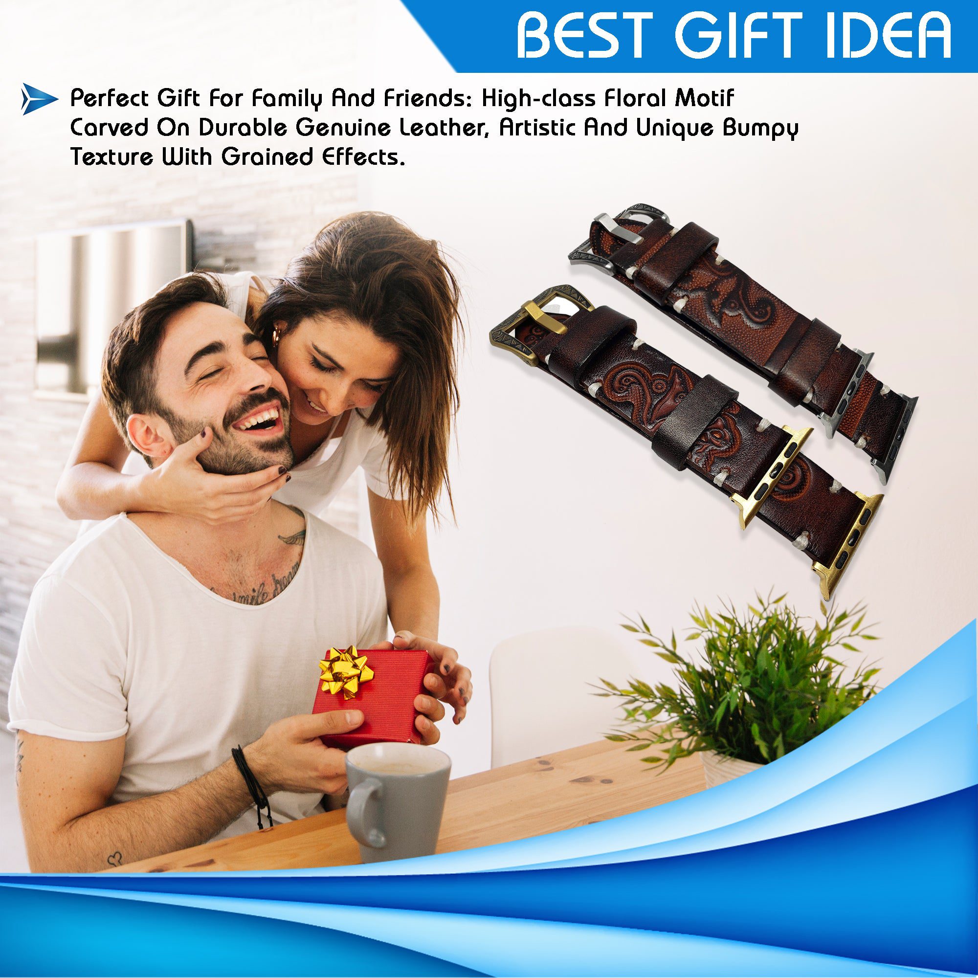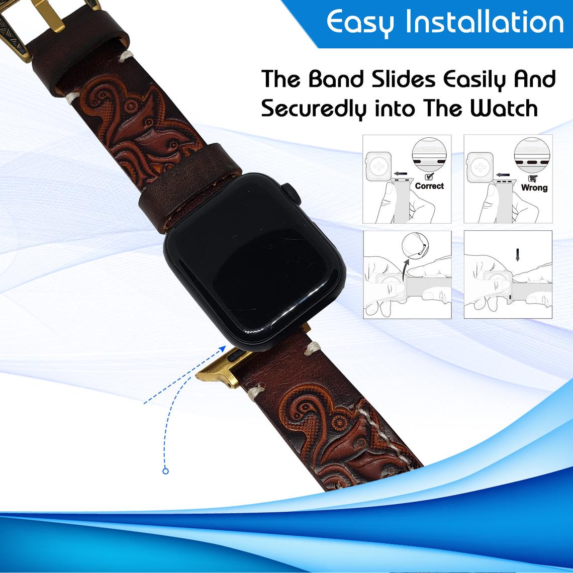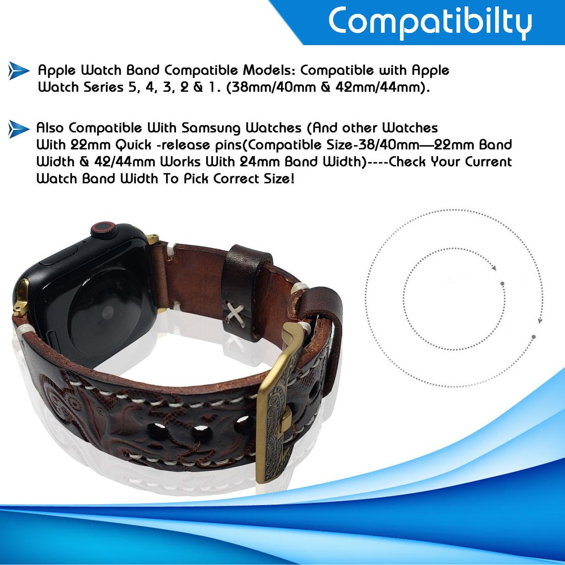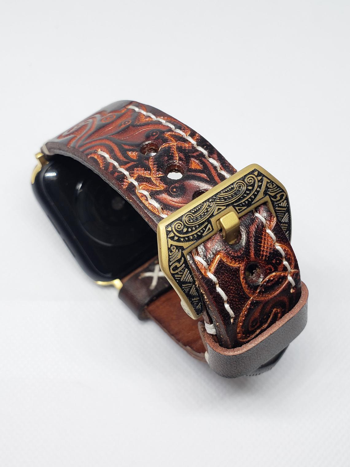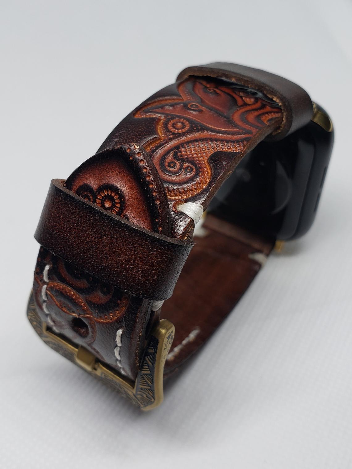 Vintage Handmade Tooled Leather Watch Band For All Wrist Watches